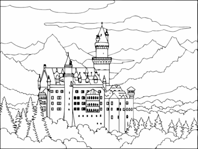 Afdrukbare Neuschwanstein kasteel kleurplaat voor alle leeftijden. Deze gedetailleerde Neuschwanstein kasteel kleurplaat kan online worden ingekleurd en/of afgedrukt. Veel plezier met het inkleuren van deze tekening!